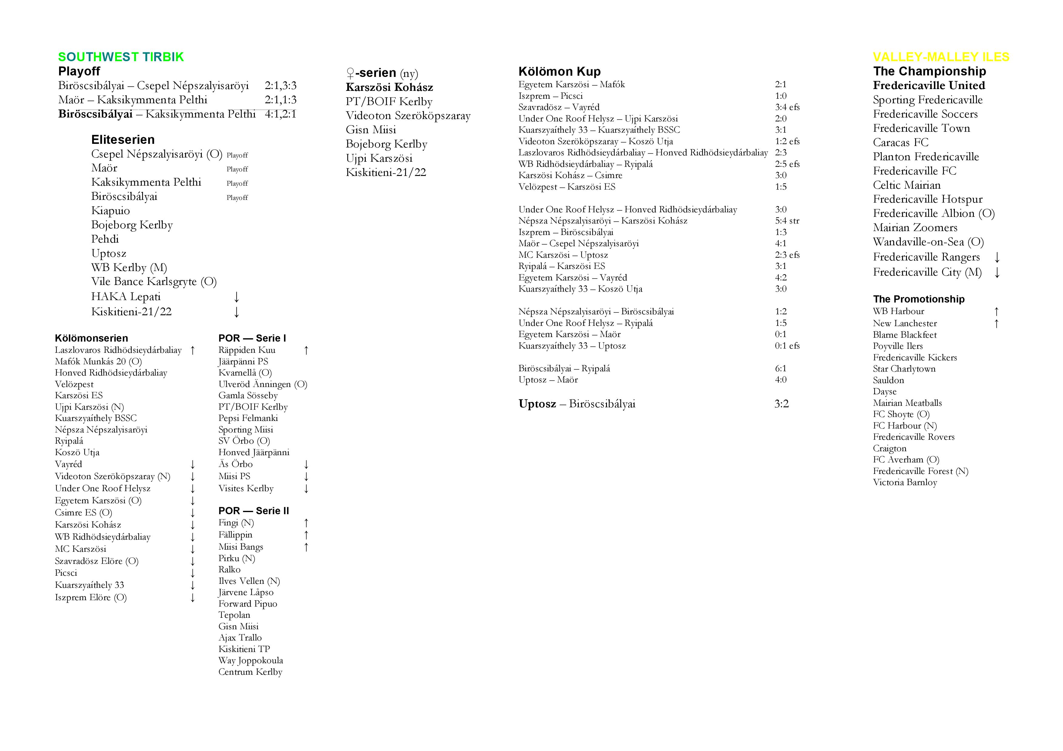 Papirudgave af slutstillingerne for Southwest Tirbik og Valley-Malley Iles 35.