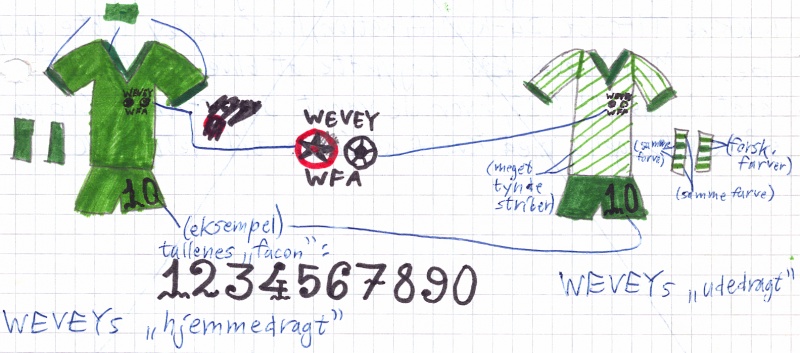 Weveys landsholdsdragter (skitser med instrukser; farverne tilpasses landets flag)